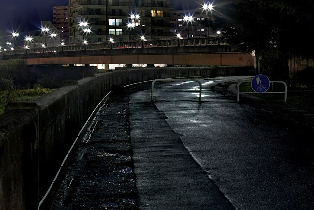 時折通るクルマのライトが当たった瞬間にピントを必死に合わせて。
