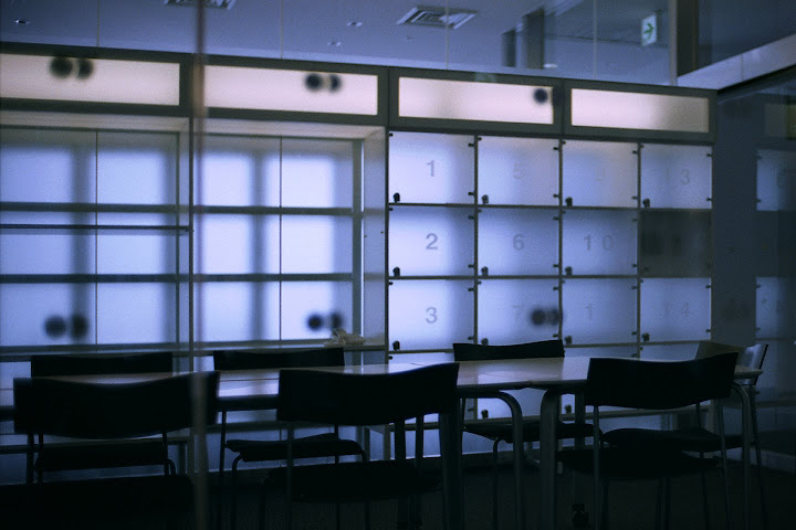 夕方のコンビニを外から撮った写真、