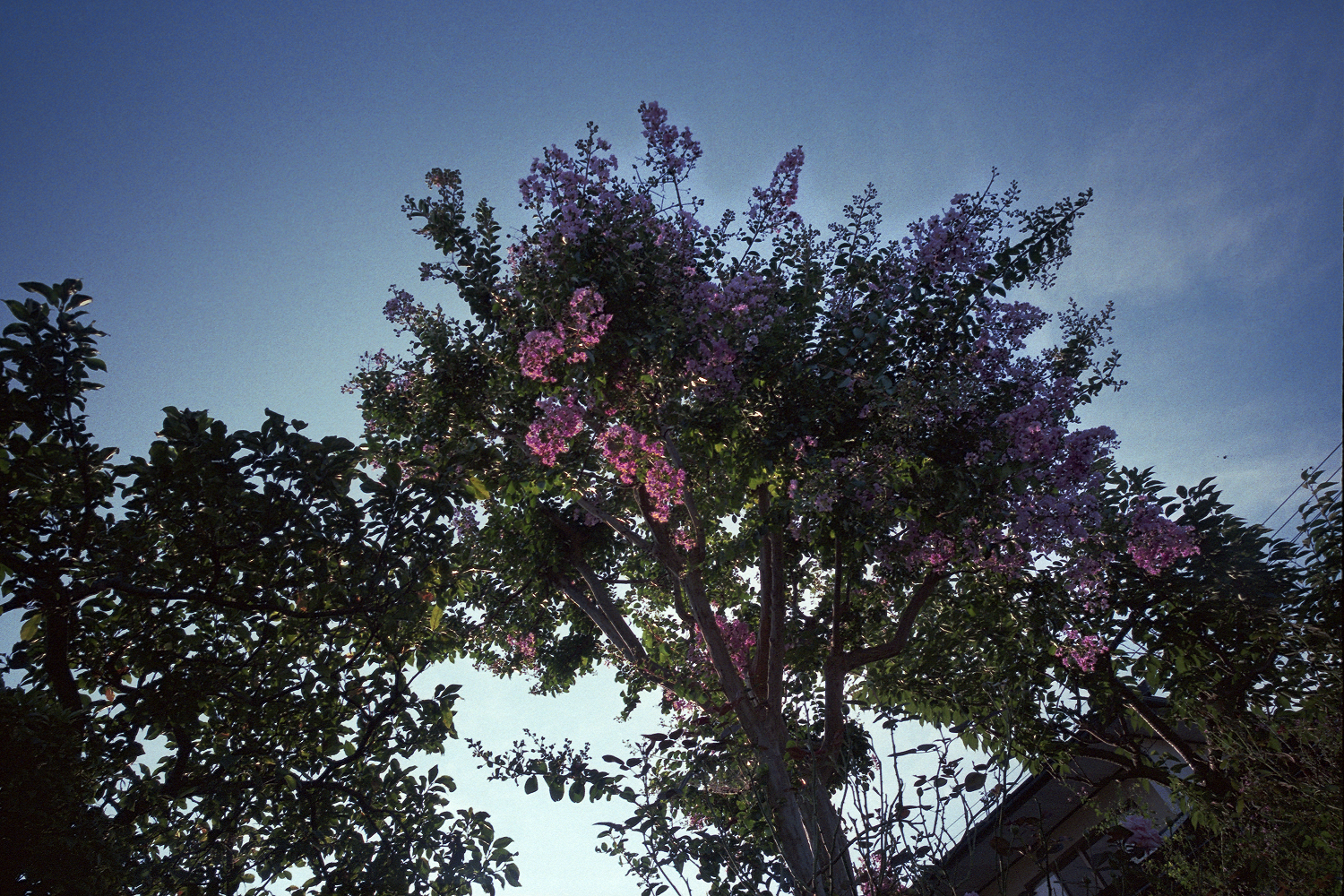 この木はサルスベリと言って、8ー9月にピンクの花をつけます。ヾ(・・ )ォィォィ